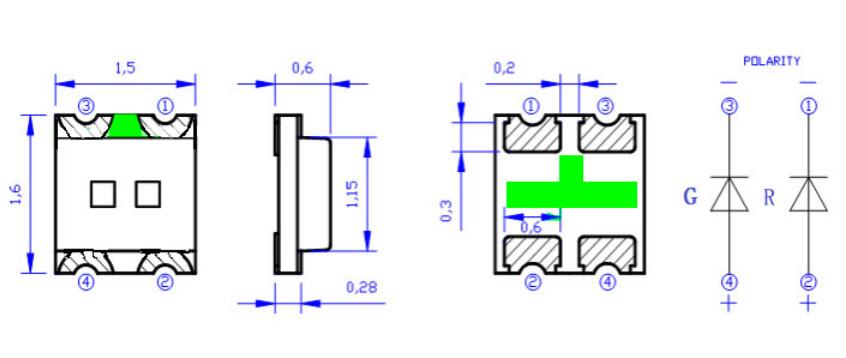 | 产品信息 | 产品形状描述:SMD 0603双色 | ||||||